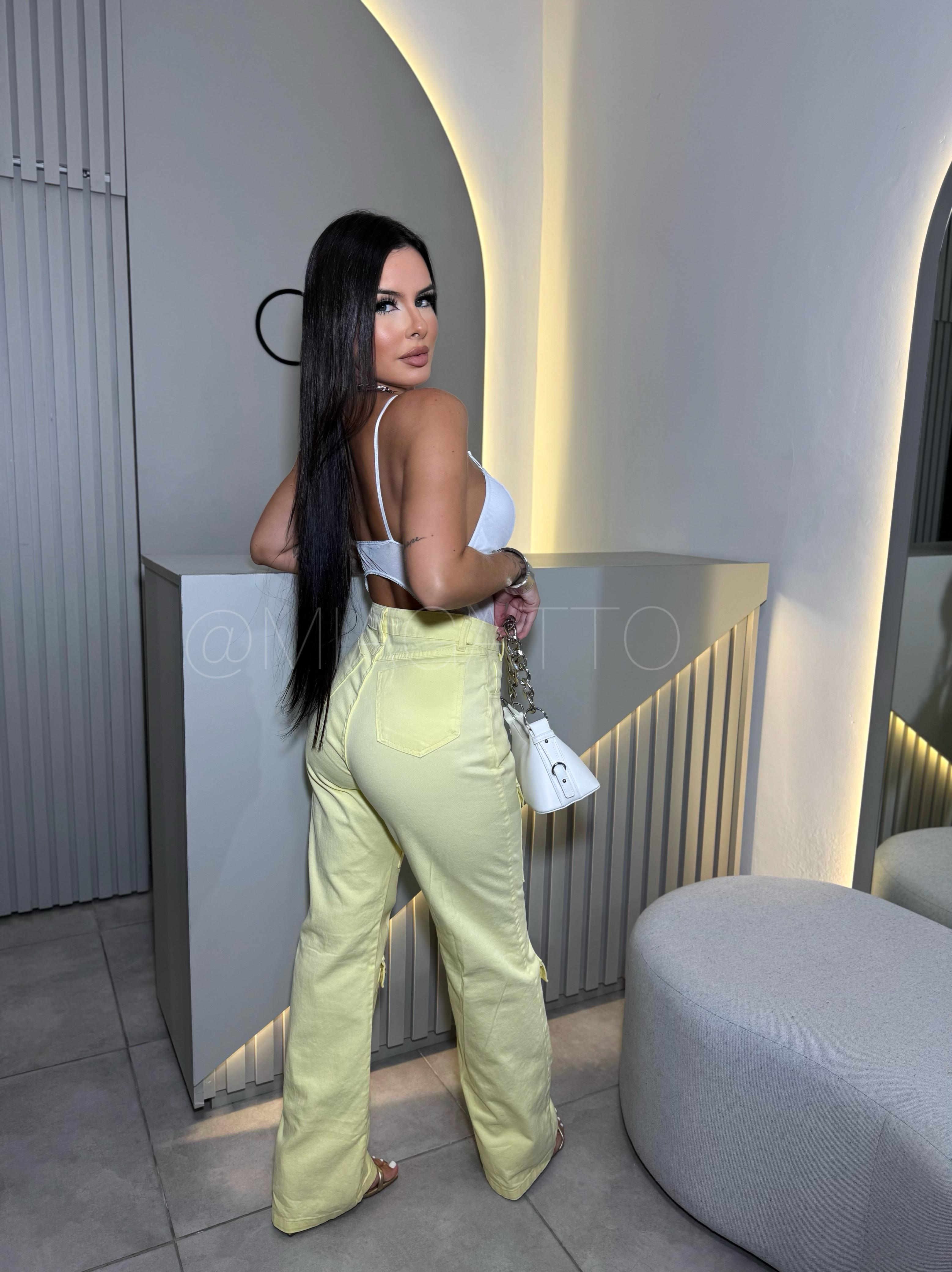 Calça Cargo Jeans Amarelo